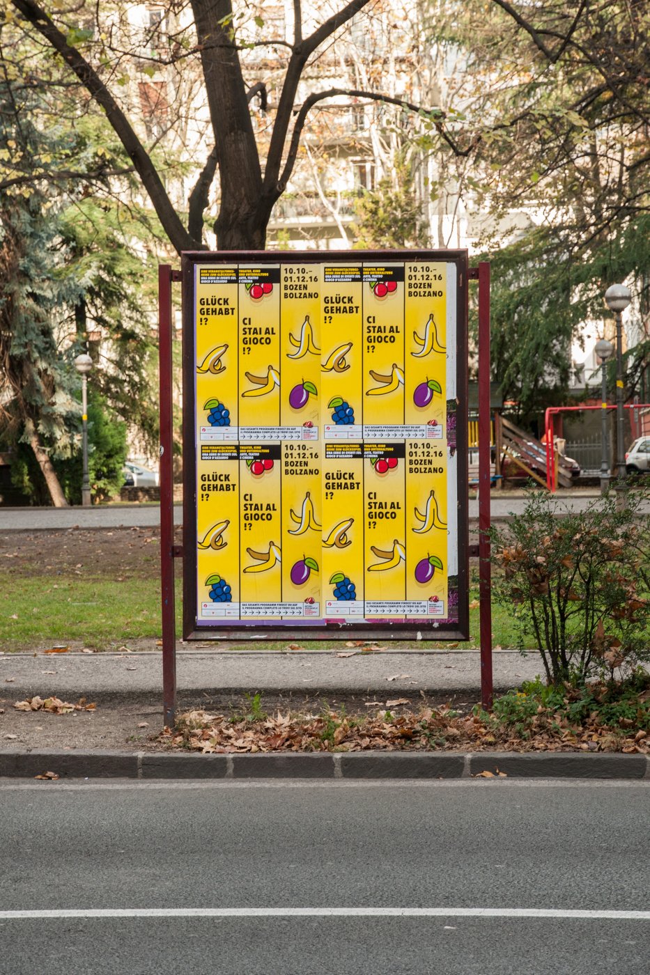 Achtung (Rein)Rutschgefahr! Das Forum Prävention macht mit neuen Aktionen auf das Thema Spielsucht aufmerksam. Bei der Plakatgestaltung haben wir uns gefragt, ob ein Gewinn – drei Bananen! – nicht gleichzeitig auch eine potentielle Gefahr bedeutet? Hat man tatsächlich Glück gehabt?!