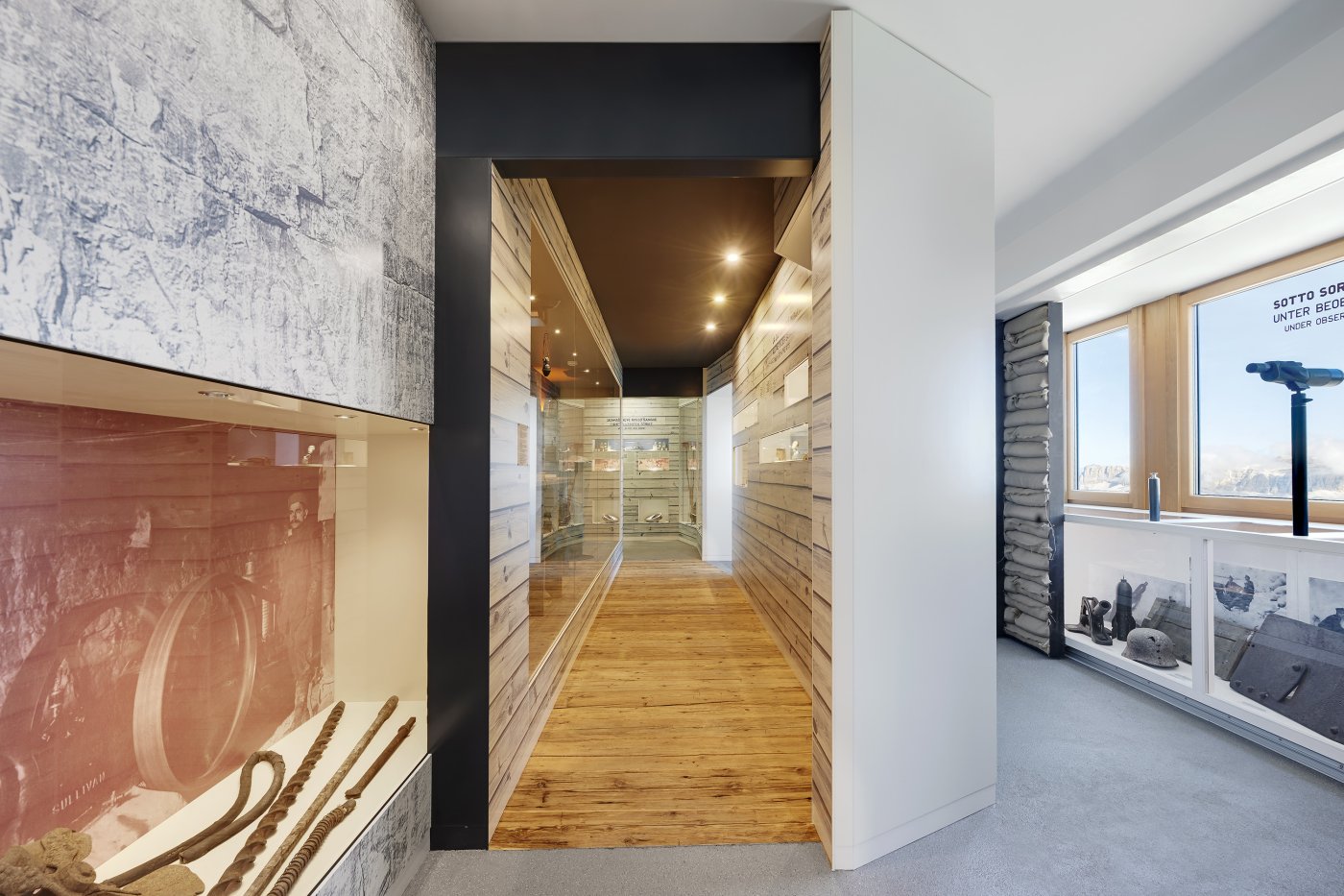 Renovation and expansion of the highest museum in Europe, located at the Punta Serauta mountain station at 2,950 m above sea level. In the midst of the former war front (1915–1917), visitors—mostly ski tourists, mountaineers, day-trippers, and school groups—experience the memory of this dramatic past. Crevasses, cold stations, the noise of bombs, wooden barracks, narrow passages, and original relics form the scenographic elements.