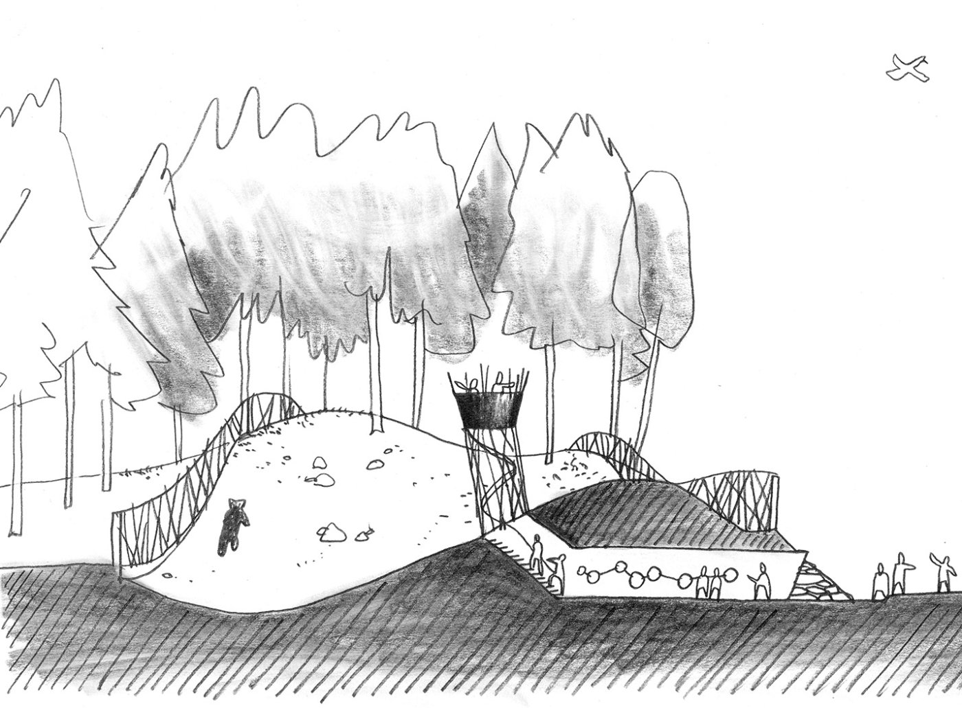 concetto di idea "Wildpark Grünau Cumberland", Grünau (A), in collaborazione con Benno Baumgarten e Josef Rohrer