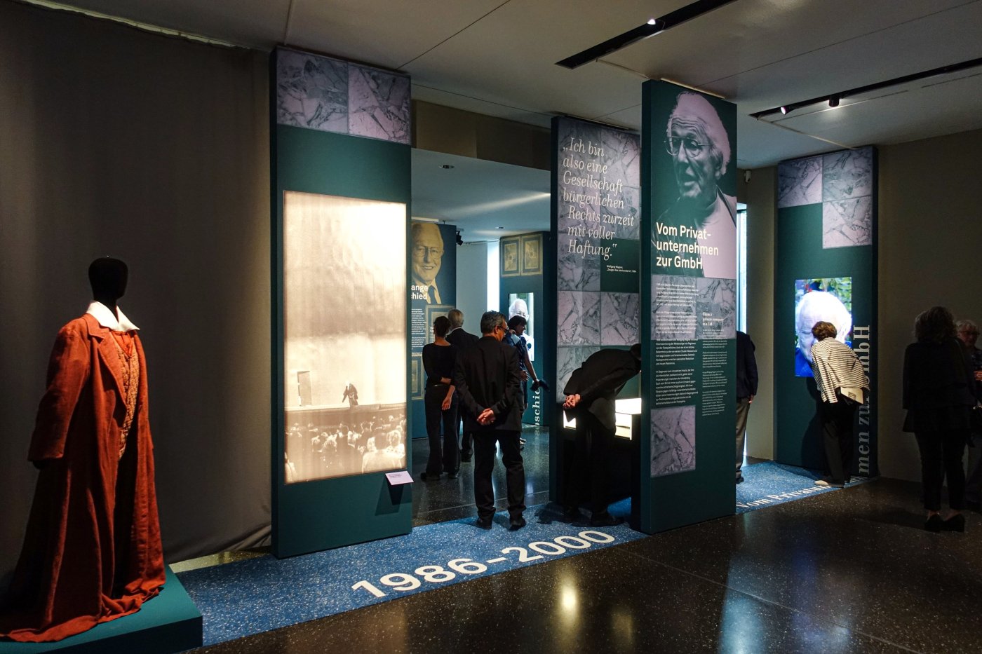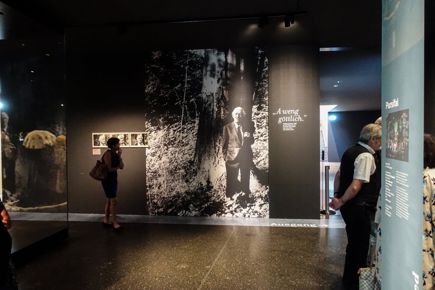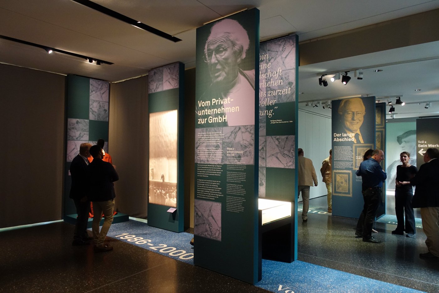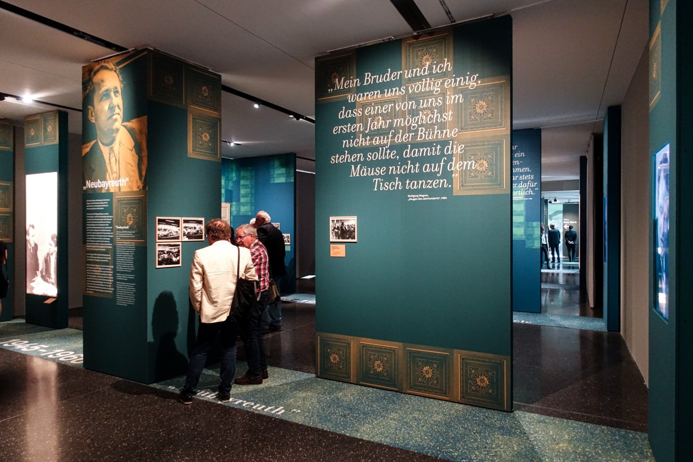 L'asse cronologico lineare che attraversa le stanze rappresenta l'affidabilità e l’abilità organizzativa di Wolfgang Wagner, il "padre classico" del teatro, con una struttura chiara dei temi della mostra. Gli assi trasversali, invece, fungono da finestre e specchi verso l’esterno e dall’esterno. Qui, influenze e contesti vengono messi in evidenza in modo puntuale.